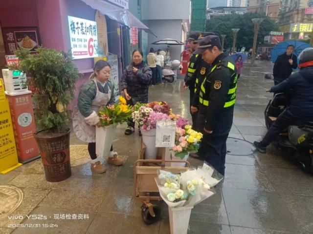 从节日前期的执法保障,到跨年夜的全程值守,支队累计出动执法人员80人次,规范流动摊点140余起,劝阻各类违规行为20余起,为市民提供指路答疑等各类帮助30余次。每一次坚守,都是对市民“平安、温暖过节”的承诺;每一份付出,都是为了让城市的烟火气里充满温情与安心。